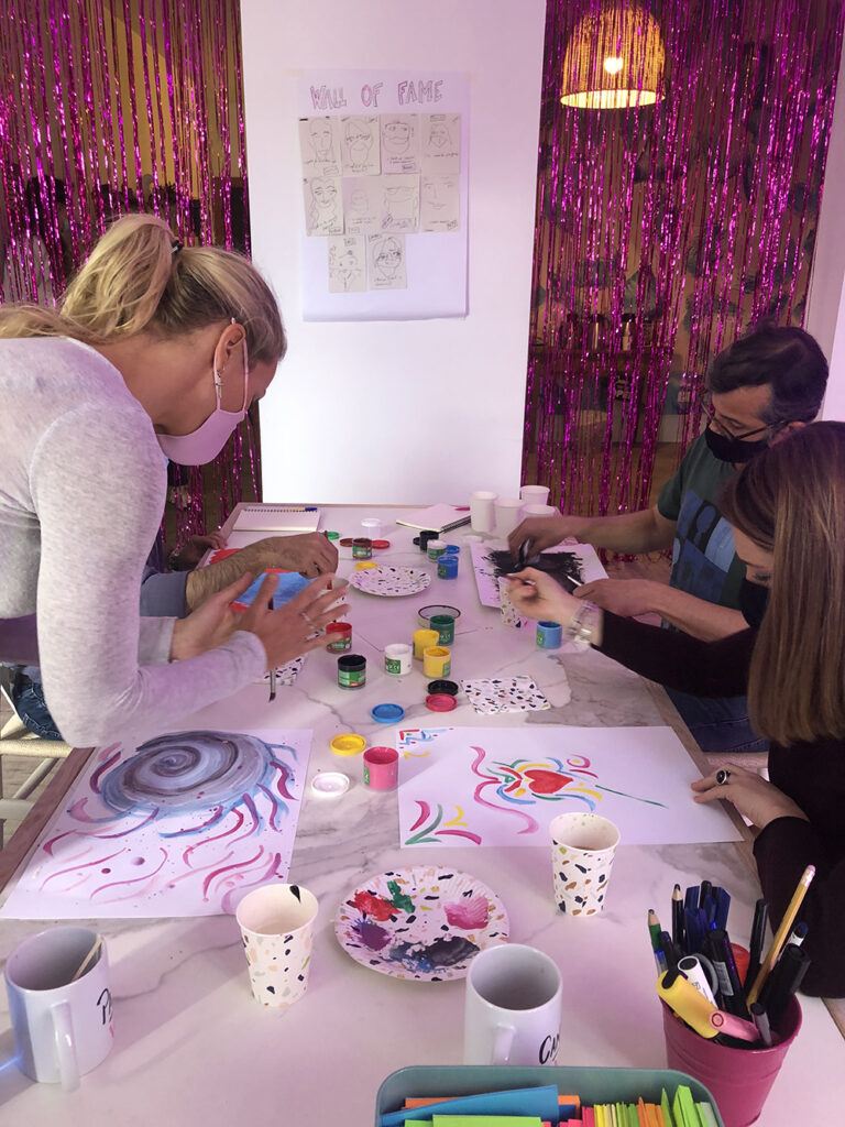 Cuando empecé a trabajar en entornos no relacionados con la publicidad me di cuenta de que en otras compañías a la gente le costaba mucho lanzar ideas tontas en una reunión, algo a lo que en las agencias de publicidad estábamos súper acostumbrados. Así que lo que hacemos en los talleres es crear un ambiente de confianza en el que todos podemos hacer el tonto, y entonces empiezan a pasar cosas de verdad divertidas y creativas.