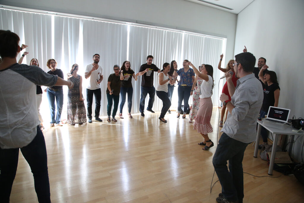 Cuando empecé a impartir talleres de música y creatividad, al poner a la gente a cantar, a veces pasaban cosas que yo no sabía muy bien cómo manejar a nivel emocional. Así que decidí formarme como coach para entender mejor los mecanismos que articulan un grupo. Los talleres no van de aprender a cantar, sino de perder la vergüenza a hacerlo, de crear un entorno creativo libre de juicios que permite que puedas equivocarte al lado del otro, que puedas arriesgar.